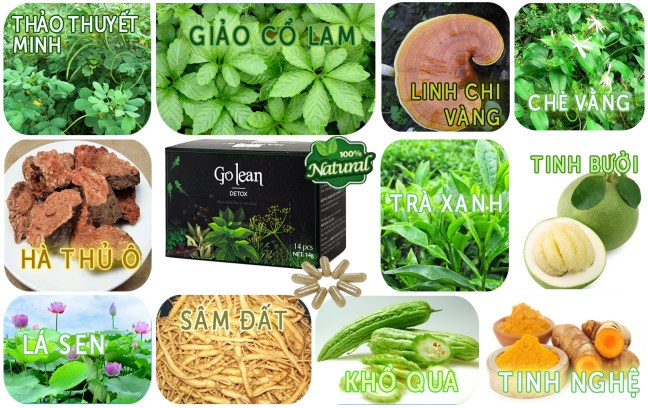 Trà giảm cân Golean Detox được sản xuất với thành phần 100% tự nhiên từ 11 loại thảo dược đắt giá có tác dụng giảm cân cao như Thảo quyết minh, Giảo cổ lam, Linh chi vàng, Hà thủ ô, Lá sen, Tinh chất bưởi, Trà xanh, Sâm đất, Khổ qua, Chè vằng cùng Tinh nghệ giúp cho tạo ra một sản phẩm giúp giảm cân an toàn và đạt hiệu quả cao hơn so với các dòng sản phẩm khác hiện có trên thị trường.
